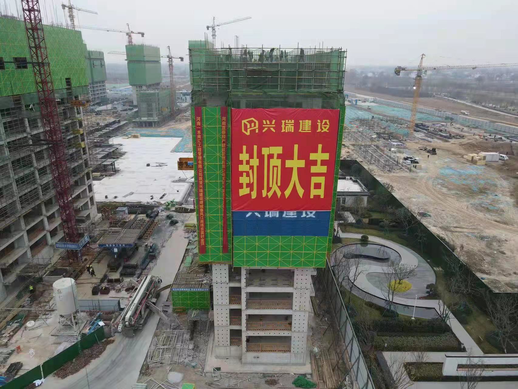 公司承建的溫縣綠城·春風(fēng)江南頤樂(lè)小鎮(zhèn)項(xiàng)目住宅地塊西標(biāo)段總承包工程,總建筑面積約48195 ㎡,其中地上建筑面積約37195 ㎡,地下建筑面積約11000 ㎡;包括5#、6#、7#、9#、10#樓 及住宅底商、配套用房、地下車庫(kù)。其中5#、6#、9#樓為11層,7#、10#樓為17層,項(xiàng)目總造價(jià)6313萬(wàn)元,合同工期694日歷天。項(xiàng)目部全體工作人員在公司領(lǐng)導(dǎo)的支持和幫助下克服工期短、任務(wù)重等諸多困難,在保證項(xiàng)目質(zhì)量和安全生產(chǎn)的基礎(chǔ)上,嚴(yán)格按照進(jìn)度計(jì)劃節(jié)點(diǎn)施工,順利完成封頂工作。