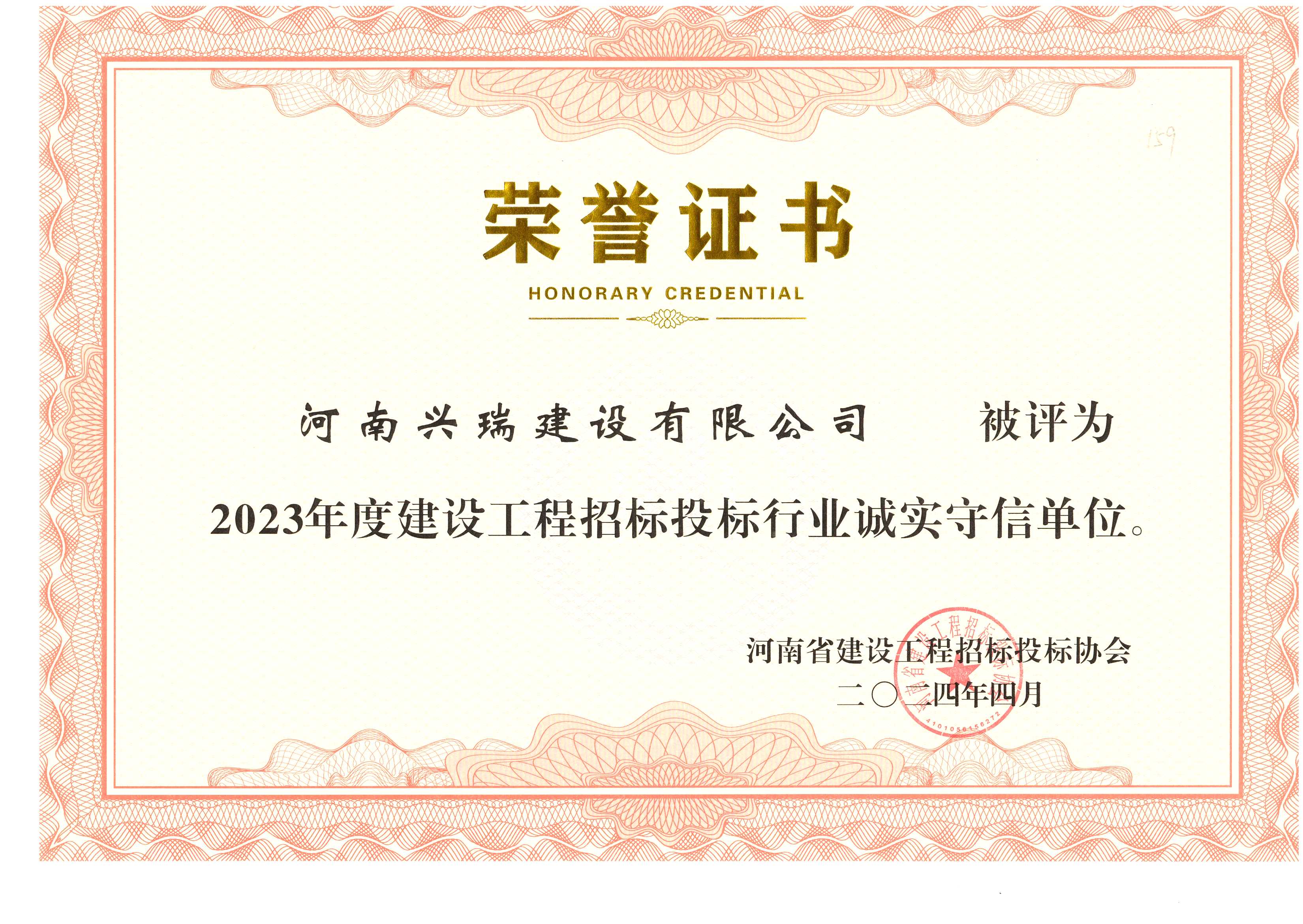 近日,河南省建設(shè)工程招標(biāo)投標(biāo)協(xié)會發(fā)布了《關(guān)于公布2023年度建設(shè)工程招標(biāo)投標(biāo)行業(yè)誠實守信單位的通知》,我公司榮獲河南省招標(biāo)投標(biāo)協(xié)會2023年度“誠實守信單位”榮譽(yù)稱號!